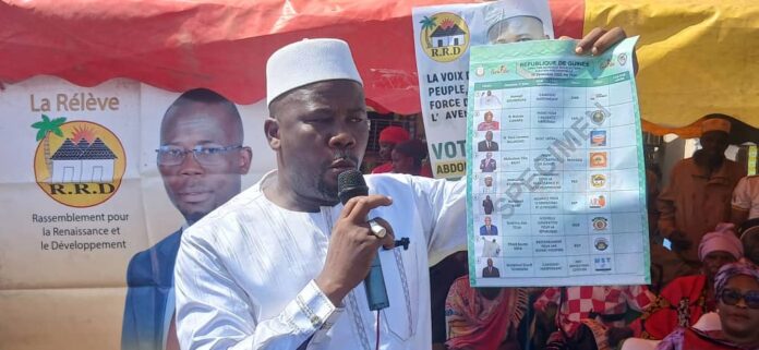 Lors de cette rencontre dans la Guinée forestière, le président du Rassemblement pour la Renaissance et le Développement (RRD) a expliqué aux électeurs comment voter pour lui sans risque d’erreur : « J’occupe la 5ᵉ position sur le bulletin de vote. Vous prenez le bic et vous cochez dans la case qui se trouve après notre logo », a-t-il précisé.