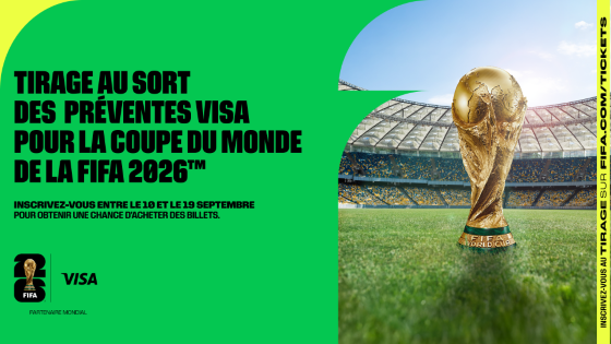Alors que le Canada, les États-Unis et le Mexique poursuivent leurs préparatifs, les supporters du monde entier vont pouvoir saisir une première opportunité de prendre part à ce rendez-vous historique, avec le tirage au sort des préventes Visa. Grâce au partenaire officiel de la FIFA pour les services de paiement, les titulaires de cartes Visa éligibles disposent d’une période de dix jours – du mercredi 10 septembre à 11h00 ET (17h00 CET) au vendredi 19 septembre à 11h00 ET (17h00 CET) – pour s’inscrire et tenter d’acheter des billets.