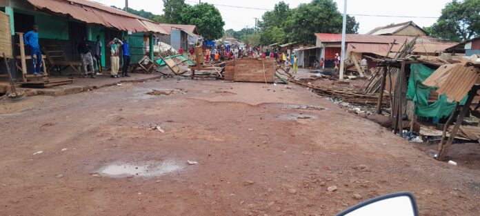 Boké, 20 juin (AGP)- La rentrée principale du Marché hangar situé au cœur du quartier Khougnèwadé est bloquée par des jeunes qui, depuis la nuit du mercredi, 19 juin 2024, ont érigé des barricades et incendié des pneus sur la chaussée.
