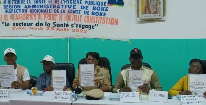 Boké, 29 août. (AGP)- L’Inspection régionale de la santé (IRS) de Boké a organisé, jeudi 28 août 2025, dans ses locaux, une campagne d’information et de sensibilisation sur le projet de nouvelle Constitution.