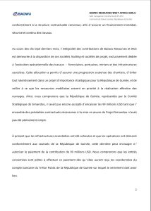 La République de Guinée, représentée par le Comité Stratégique de Simandou, n’a pas encore accepté d’encaisser les 99 millions USD tant que l’ensemble des préalables contractuels nécessaires à la mise en œuvre du Projet Simandou n’a pas été pleinement rempli. », précise l’entreprise.
