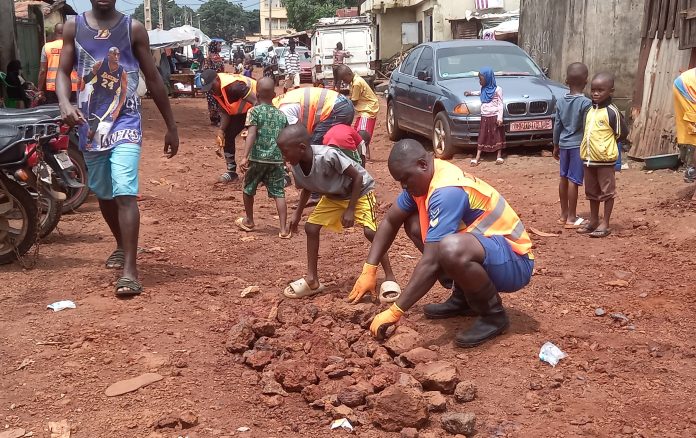 En l’absence d’intervention des autorités locales, les habitants, appuyés par le conseil de quartier, ont pris l’initiative d’améliorer eux-mêmes l’état de la voirie. Ce week-end, jeunes et adultes se sont mobilisés pour concasser et tailler des pierres dans le but de rendre les voies plus praticables.