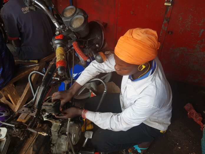 Conakry, 08 mars (AGP)- A l’ occasion de la journée internationale dédiée aux femmes du monde, l’AGP a rencontré Martine Doré, une mécanicienne de moto dans le quartier à Symanbossia dans la commune de Ratoma.