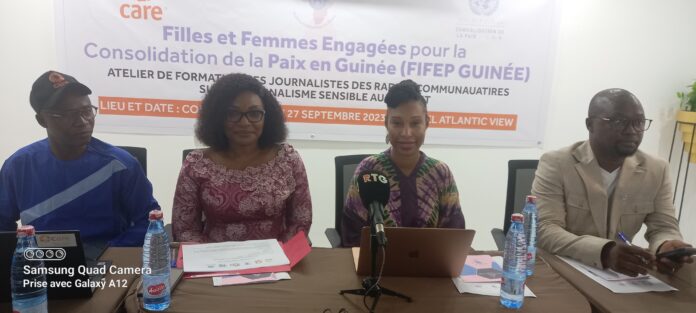 L’atelier est financé par PBF, sous l’initiative de CARE international en partenariat avec WANEP-GUINÉE, le Groupe de travail et la COFIG-DCPD.