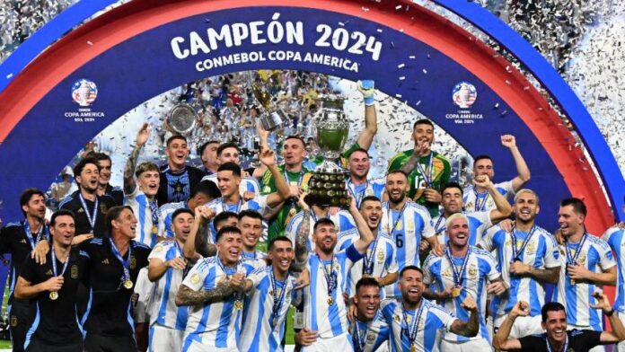 Conakry, 15 juil (AGP)-L’Argentine confirme sa domination sur le football sud-américain et mondial, et réalise le triplé Copa América 2021 – Coupe du monde 2022 – Copa América 2024 ! Dans la nuit de dimanche à lundi, l’Albiceleste a remporté le 16e trophée continental de son histoire, devenant ainsi la nation la plus sacrée devant l’Uruguay (15), grâce à un court succès acté en prolongations contre la Colombie (1-0).
