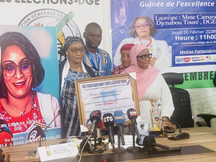 Dixinn, 27 fév. (AGP)-La Directrice Générale des Élections (DGE), Madame Camara Djenebou Touré, a remporté, jeudi 26 février 2026, le Prix Miroir Guinée de l’Excellence pour son leadership dans l’organisation d’une élection qualifiée de paisible et sans précédent en Guinée.