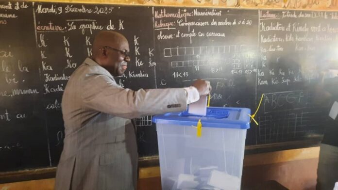 Conakry, 28 Déc (AGP)-Le candidat du parti Bloc Libéral (BL) Dr. Faya Lansana Millimouno a voté ce dimanche, 28 décembre 2025 au quartier Anta Fassa, secteur Koichiro Matsuura, au bureau de vote numéro 2, dans la commune de Tombolia.