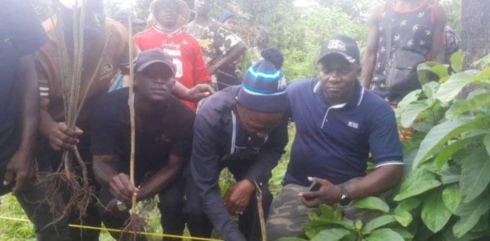 Au total, 2 600 plants de mélina ont été mis en terre sur deux hectares dans le secteur de Wonkifong, district de Koffio, dans une ambiance festive et solidaire.
