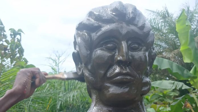 Une stèle en cours d’être érigée à l’effigie de l’explorateur français René Caillié, marquant son passage historique au port négrier de Benty.