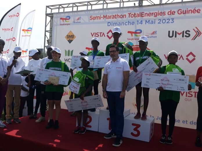 Conakry 14 mai (AGP)- La Fédération Guinéenne d’Athlétisme en collaboration avec TotalEnergies de Guinée a organisé ce dimanche 14 mai 2023 la 9ème édition de semi-marathon au stade du 28 septembre de Conakry. Cette compétition a réuni des athlètes des 6 communes de la capitale et ceux de l’intérieur du pays.