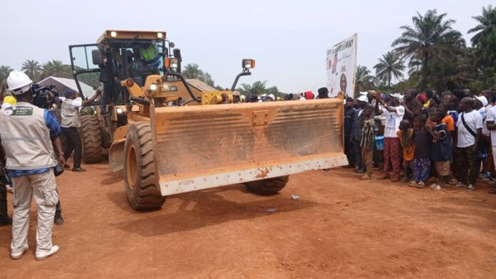 Yomou, 22 Déc. (AGP)- Le samedi 20 décembre 2025, dans le district de Kéréma, Commune Rurale de Bounouma, le Premier ministre, Chef du Gouvernement, Amadou Oury Bah, accompagné de plusieurs membres du gouvernement, des autorités régionale et préfectorale ainsi que des présidents des délégations spéciales, a présidé la cérémonie officielle de lancement des travaux de construction de la route nationale N° 11, N’Zérékoré-Yomou- Frontière Libéria, longue de 75 Km.