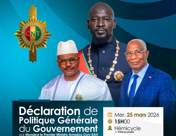 Conakry, 24 mars (AGP)- Conformément aux dispositions de l’article 82 de la Constitution, le Premier Ministre, Chef du Gouvernement, Monsieur Amadou Oury Bah, procédera à la Déclaration de Politique Générale, ce mercredi 25 mars 2026, à l’hémicycle du Palais du peuple, devant la Représentation nationale.