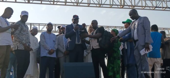 Aboubacar Sylla, président de l’ADP et leader de l’UFC, a salué la mobilisation avant d’évoquer les “progrès” réalisés,  au cours des quatre années écoulées depuis la prise de pouvoir du Comité National du Rassemblement pour le Développment (CNRD). Il a cité le doublement du PIB, la construction des routes et la montée en puissance du secteur minier, rappelant que la Guinée est devenue en 2024 le premier exportateur mondial de bauxite.