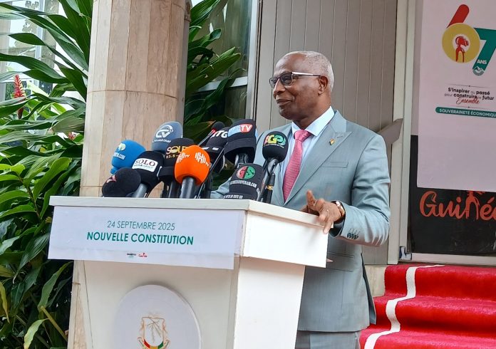 Conakry, 24 sept. (AGP)- Le Premier ministre, Chef du gouvernement, Amadou Oury Bah, a rencontré les journalistes de la presse publique, privée et internationale ce mercredi 24 septembre 2025, afin de faire le point sur le référendum constitutionnel du 21 septembre 2025.