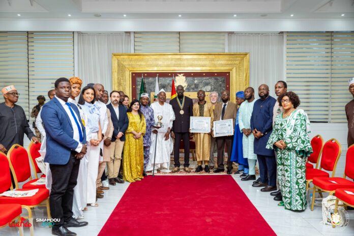 Introduite auprès du Chef de l’État par le ministre de la Culture, du Tourisme et de l’Artisanat Moussa Moise SYLLA, la rencontre s’est tenue en présence de hautes personnalités, dont le ministre secrétaire général de la Présidence, le général Amara CAMARA, le ministre directeur de cabinet de la Présidence Djiba DIAKITÉ, le conseiller personnel du Chef de l’État Thierno Mamadou BAH, ainsi que la gouverneure de la ville de Conakry M’Mahawa SYLLA. À leurs côtés, une délégation de près de 40 acteurs du monde culturel: écrivains, éditeurs et passionnés du livre ainsi des partenaires, réunis autour d’une même ambition : hisser la littérature guinéenne à la hauteur de son potentiel. Car, au-delà d’une simple distinction, ce Grand Prix porte une charge historique forte. Pendant plus de trente ans, écrivains et éditeurs ont espéré sa concrétisation.