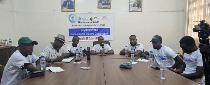 Conakry, 27 oct. (AGP)- La Fédération aquatique de Guinée (FAG) poursuit son programme de formation en faveur de ses membres. Ce dimanche, 26 octobre 2025, elle a organisé à Conakry un atelier de renforcement des capacités sur la bonne gouvernance et le leadership, à l’intention de ses organes de gestion, notamment le bureau exécutif et le conseil d’administration.
