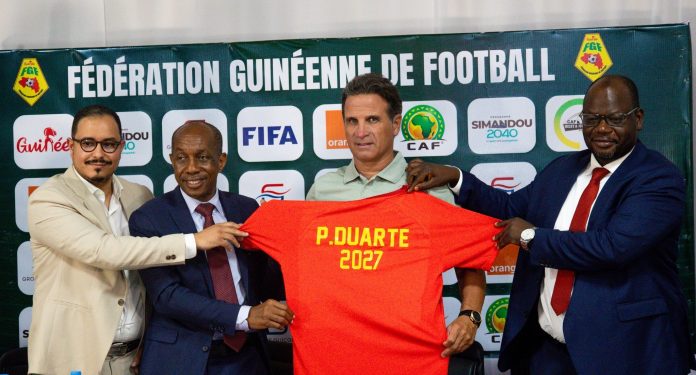 Conakry, 13 août. (AGP)-La Fédération Guinéenne de Football (FGF) a présenté mardi 12 août 2025, lors d’une conférence de presse, tenue à la plage Palm Camayenne, le nouveau sélectionneur de l’équipe nationale A, Paulo Jorge Rebelo Duarte. L’entraîneur portugais a signé un contrat de deux (02) ans, du 1er août 2025 au 1er août 2027.