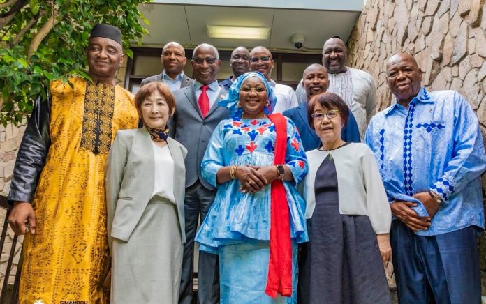 Tokyo, Japon – 13 juin 2025 – Le Premier ministre Amadou Oury Bah, accompagné de la ministre de la Promotion féminine, de l’Enfance et des Personnes vulnérables, a effectué une visite à la chancellerie de la République de Guinée à Tokyo. L’objectif de cette rencontre était de s’informer directement sur les conditions de travail du personnel diplomatique et consulaire et l’encourager dans sa mission.