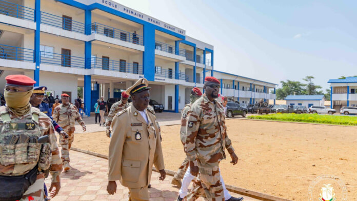 Le tour d’inspection s’est poursuivi à l’école primaire DRAMÉ Oumar, où le Président de la République a marqué les premiers pas de son parcours scolaire. Cet établissement d’enseignement public a été entièrement reconstruit et modernisé sous l’impulsion du Chef de l’État. Les nouveaux bâtiments, achevés et équipés grâce à son engagement personnel, apportent un investissement significatif dans l’éducation de la jeunesse de Kankan.