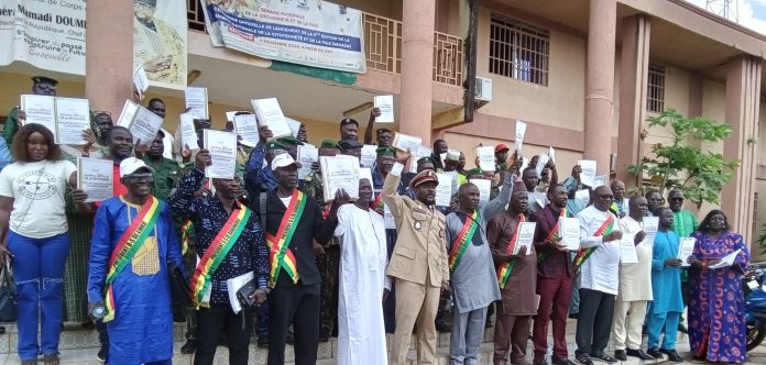 Le général à la retraite Sidi Yaya Camara, président d’honneur de la cérémonie et fils ressortissant, a quant à lui invité les acteurs de la société civile, les religieux, les hommes de culture et les médias de la place à s’impliquer pleinement dans la vulgarisation, car dit-il, cela va permettre aux citoyens le moment venu, de faire un vote référendaire en toute connaissance de cause. La séance a pris fin par la remise d’un important lot d’exemplaires du projet de nouvelle constitution aux sous-préfets et aux présidents des délégations spéciales pour la restitution sur le terrain.