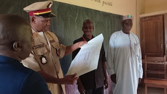 Le Préfet de Koubia entouré du président de la délégation spéciale de la commune urbaine,  des délégués nationaux, le DPE et les représentants de L’APEAE,  a procédé à l’ouverture de l’enveloppe contenant l’épreuve d’Anglais pour les sciences sociales.