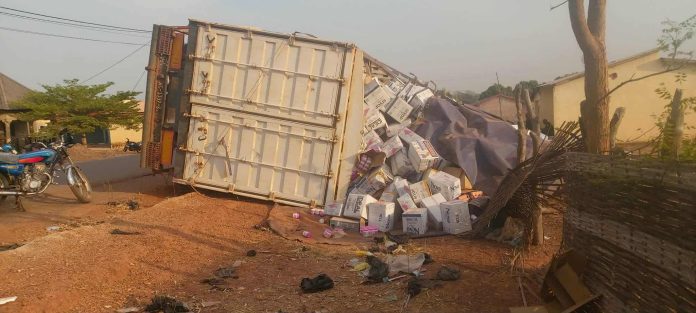 Koundara, 26 fév. (AGP)-Un camion de transport de marchandises en provenance du Sénégal voisin s’est renversé lundi, 23 février 2026, dans la descente d’une colline menant au centre-ville de Koundara, a constaté l’AGP.