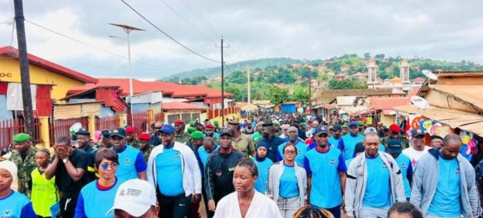 L’événement, initié par la Fédération guinéenne de randonnée pédestre et sport pour tous (FEGRAPE) en collaboration avec l’Inspection régionale de la Jeunesse et des Sports, a rassemblé civils, militaires, responsables administratifs et élus locaux. Le cortège, dans une ambiance conviviale et militante, a sillonné plusieurs quartiers de la commune urbaine de Mamou : Almamya, Poudrière, carrefour Douane, Boulbinet, Loppet 2, Madina Tambassa – avant de revenir au gouvernorat, point de départ et d’arrivée.