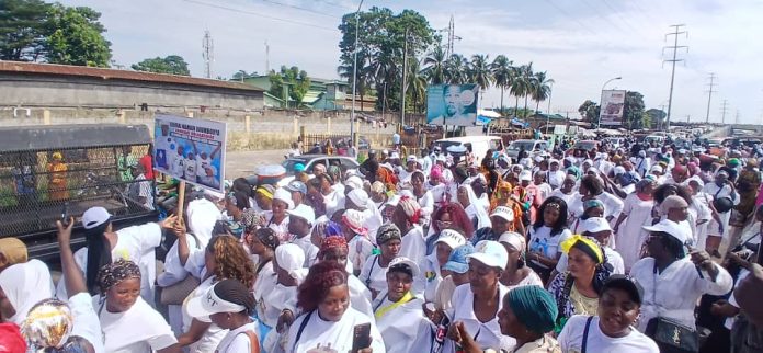Conakry, 20 oct. (AGP)-À la suite d’une déclaration du président de la délégation spéciale de Matam, Aly Badra Cheickna Koné, les femmes du marché de Madina ont organisé, ce lundi 20 octobre, une marche qualifiée de  citoyenne pour réclamer la candidature « obligatoire » du président Mamadi Doumbouya à l’élection présidentielle du 28 décembre 2025.