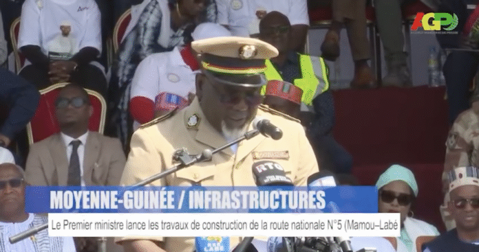 AccueilActualitéMOYENNE GUINÉE/INFRASTRUCTURES : Le Premier ministre lance les travaux de construction de... MOYENNE GUINÉE/INFRASTRUCTURES : Le Premier ministre lance les travaux de construction de la route nationale N°5 (Mamou–Labé) ActualitéPolitiqueSociétéVidéos Publié le décembre 1, 2025 Publié par Bangaly Sangare FacebookXPinterestWhatsApp Le Premier ministre lance les travaux de construction de la route nationale N°5 (Mamou–Labé) Articles récents Actualité Kindia : Le premier ministre Amadou Oury Bah lance les travaux d’une centrale solaire de 50 MW à Kamissaya Kindia , 21avr. (AGP)- Le premier ministre, chef du gouvernement, Amadou Oury Bah, a... avril 21, 2026 Economie Les États-Unis et l’Iran avertissent qu’ils sont prêts à la guerre alors que les négociations sont au point mort Les États-Unis et l'Iran ont tous deux averti qu'ils étaient prêts à la guerre... avril 21, 2026 A la Une Guinée: Tenue d’une séance de travail consacrée à l’inscription du massif du Fouta Djallon au patrimoine mondial de l’UNESCO Conakry, le 21 avril (AGP)-Le premier ministre Amadou Oury Bah, a tenu une séance de... avril 21, 2026 Culture Boké-Deuil: La population rend un dernier hommage à El Hadj Mamadou Sylla Boké, 20 avril (AGP)-La place des Martyrs de Boké, témoin des hauts faits historiques,... avril 20, 2026