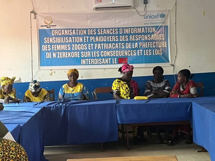 N’Zérékoré, 23 Déc (AGP)- Une séance d’information, de sensibilisation et de plaidoyer sur les mutilations génitales féminines (MGF) s’est tenue la semaine dernière à la Maison des Jeunes de N’Zérékoré, à l’initiative de la Direction préfectorale de la Promotion féminine, en collaboration avec les responsables des femmes zogos et les représentants du patriarcat de la préfecture.