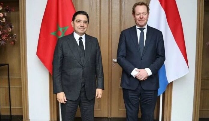 La Haye -(MAP)- Dans le cadre de la dynamique internationale créée sous l’impulsion de Sa Majesté le Roi Mohammed VI, que Dieu L’assiste, en soutien à la souveraineté du Maroc sur son Sahara et au Plan d’autonomie, les Pays-Bas ont affirmé qu' »une véritable autonomie sous souveraineté marocaine est la solution la plus réalisable pour mettre un terme définitif à ce différend régional ». Cette position a été exprimée dans la Déclaration conjointe adoptée par le ministre des Affaires étrangères, de la Coopération africaine et des Marocains résidant à l’étranger, Nasser Bourita, et le ministre néerlandais des Affaires étrangères et ministre de l’Asile et de la Migration, David Van Weel, à l’issue de leur rencontre, vendredi, à La Haye. La Déclaration conjointe indique également que les Pays-Bas accueillent favorablement l’adoption de la Résolution 2797 du Conseil de sécurité de l’ONU et expriment leur plein soutien aux efforts du Secrétaire général et de son Envoyé personnel visant à faciliter et mener des négociations fondées sur l’Initiative marocaine d’autonomie, dans l’objectif d’aboutir à une solution juste, durable et mutuellement acceptable, telle que préconisée par les résolutions pertinentes du Conseil de sécurité.*